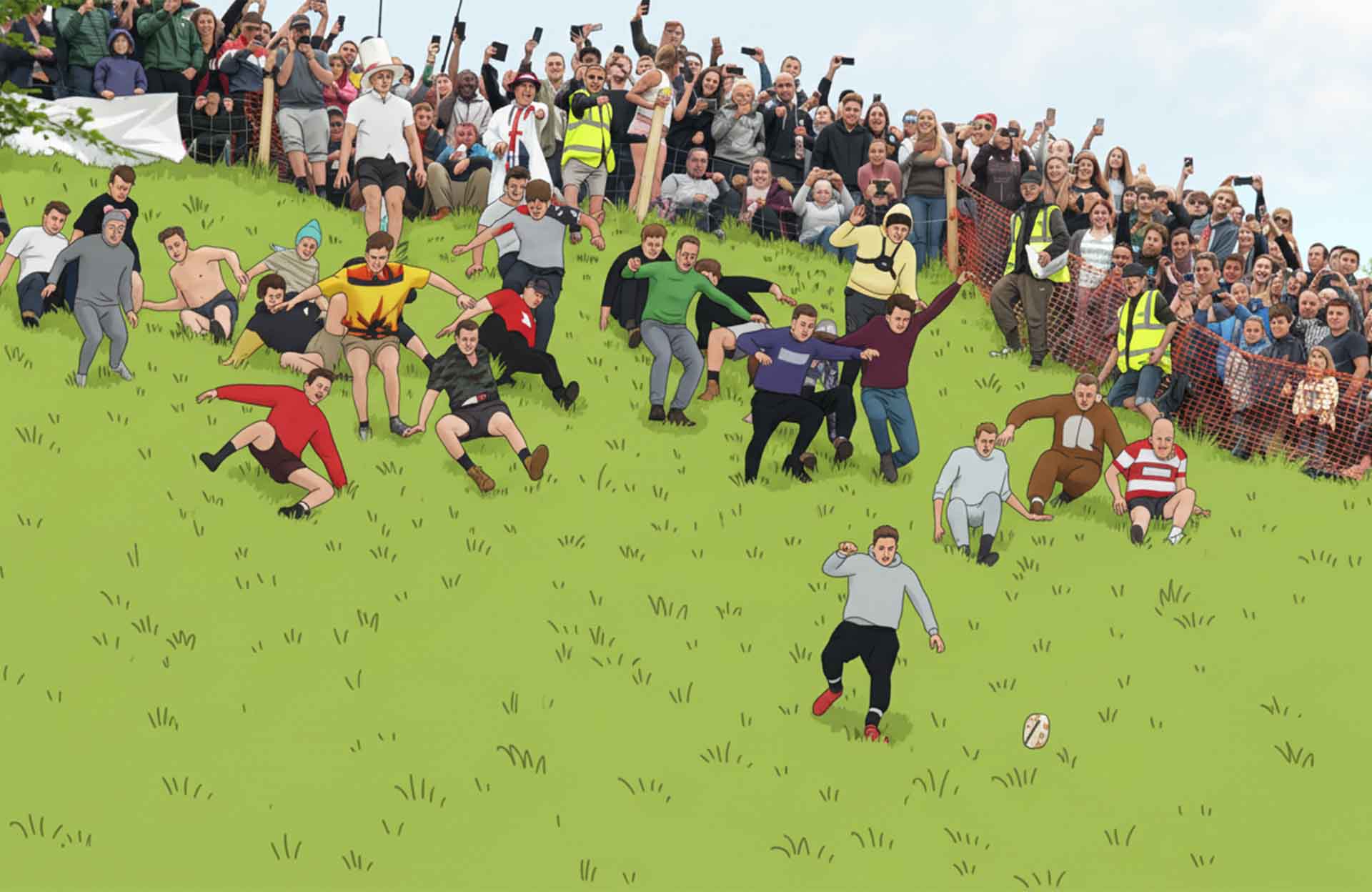 It starts with cheese and ends with people tumbling uncontrollably down a hill. Competitors chase the cheese like it’s eternal glory, but all they really get is a face full of mud. A gloriously pointless sport that only the British could dream up.