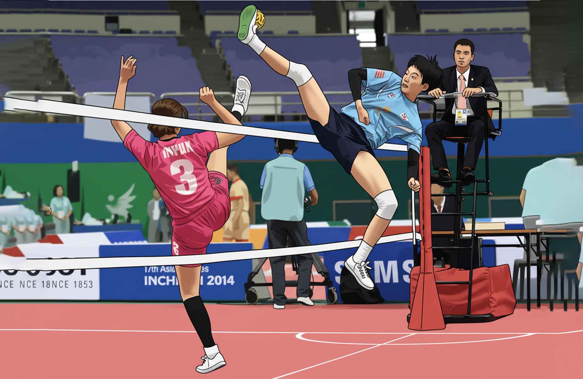 Southeast Asia’s version of volleyball—played with kicks. Players use their feet, heads, and knees to strike a light ball. The jumps look like video game stunts, and the acrobatics could belong in an action movie. If Bruce Lee ever played a sport, this would be it.